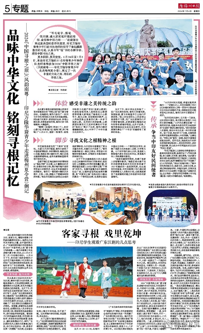 夏木阴阴,夏花莹莹。6月24日至7月3日,来自印尼万隆的37名华裔青少年和领队老师来梅参加2024“中国寻根之旅”(风韵南粤——印尼万隆华裔青少年走进梅州夏令营),度过了一次丰富的文化之旅、难忘的寻根之旅。
