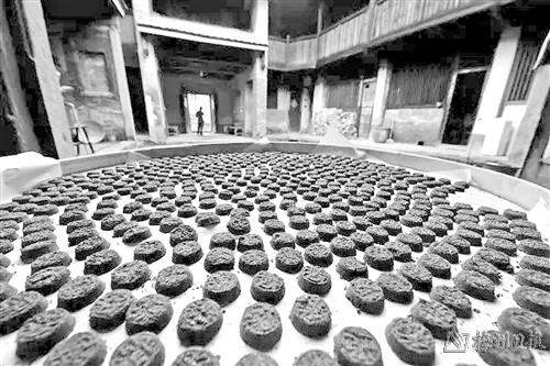 卢宏汉对父传药茶的制作工艺进行了革新,由粗磨改为细磨,用铜模压成扁圆的小饼,每块重一钱,命名为“万应茶饼”。