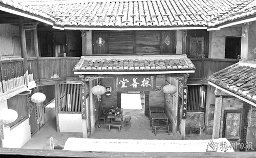 卢远城之子卢昌浩(1903—1950),字汉夫,则在8岁时进入陈东乡溪背学堂读书。1921年,卢昌浩就读于厦门集美学校师范部,以优异成绩毕业,之后回乡创办私塾陈东乡书院——有生堂。卢昌浩博览群书,文笔过人,后被永定县县太爷林伟明聘为兼职的县参议文书,其间他在私塾任教,并经营家族万应茶厂。善可嘉德、灵芝济世、延年益寿……从福山居留存的清末民国的老匾上可以看出,当时卢昌浩经营万应茶可谓声誉盛隆,也可见当时万应茶给这些题字的政府机构、军队长官以实实在在的“护生效应”。