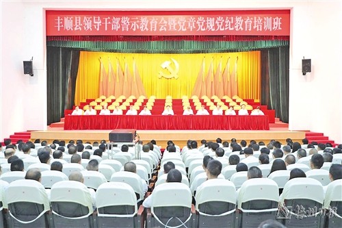 本报讯 7月2日,全县领导干部警示教育会暨党章党规党纪教育培训班在丰顺县会展中心大会堂召开。会议深入学习领会习近平总书记关于全面加强党的纪律建设的重要论述精神,认真学习新修订的《中国共产党纪律处分条例》,传达学习贯彻全省、全市领导干部警示教育会暨党章党规党纪教育培训班精神,教育引导全县党员干部特别是领导干部忠诚拥护“两个确立”、坚决做到“两个维护”,以严明纪律推动全面从严治党向纵深发展,为推进中国式现代化的丰顺实践提供坚强政治保证。丰顺县委书记张志锋主持会议并讲话,县委副书记、县长罗达祥,县人大常委会主任邱翠茂,县政协主席李瑞金,县委副书记夏兰亭,县委副书记、政法委书记张晓山出席会议。