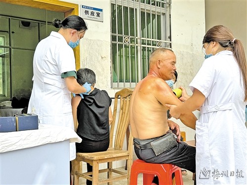 近日,为全力以赴做好灾后帮扶重建工作,蕉岭县中医医院医共体总院组织医疗团队到广福镇中心卫生院(蕉岭县中医医院广福分院)开展义诊服务,并发放抗疫解暑汤剂和治疗药物,为受灾群众的健康“保驾护航”。