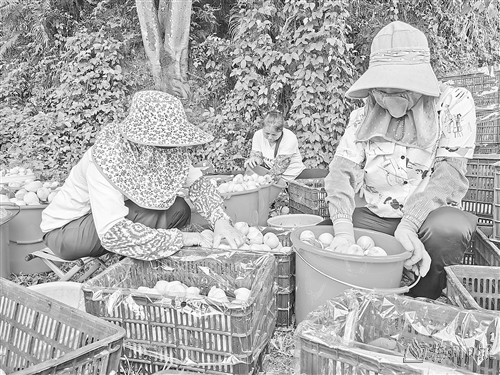 本报讯 近日,平远县八尺镇黄沙村200余亩鹰嘴桃园正式迎来采摘季。果农们抢抓这黄金时机,穿梭在郁郁葱葱的桃林间,忙碌而有序地进行着采收工作,构成了一幅生动和谐的乡村丰收画卷。
