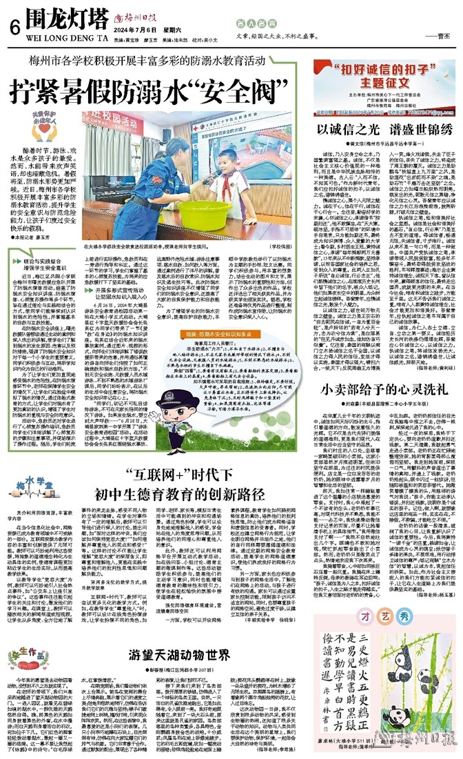 酷暑时节,游泳、戏水是众多孩子的最爱。然而,水能带来欢声笑语,却也暗藏危机。暑假将至,防溺水形势更加严峻。近日,梅州市各学校积极开展丰富多彩的防溺水教育活动,提升学生的安全意识与防范危险能力,让孩子们度过安全快乐的假期。