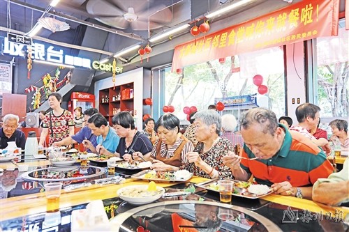 据了解,大新城社区长者饭堂、邻里食堂是大新城社区持续推进新时代养老服务体系建设,切实提升群众获得感、幸福感的举措之一。按照“政府主导、多元参与、共建共享、老人受益”的要求,大新城社区长者饭堂采取“政企合作”模式,为长期居住在大新城社区的梅县区户籍长者们提供就餐服务,政府兜底的困难长者每顿只需支付2元,重点保障对象的长者每顿只需3元,其他服务对象依照年龄的不同每顿支付5至8元不等。
