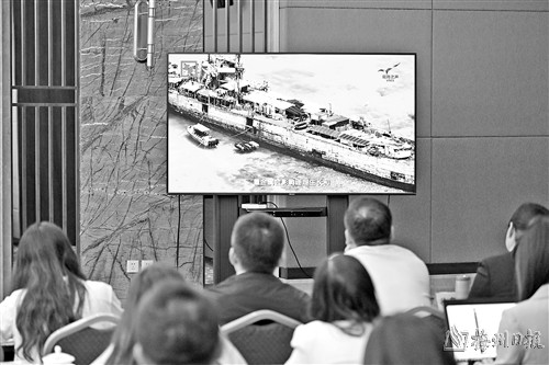 图为在位于北京的发布现场上播放的仁爱礁生态调查纪实短片《仁爱礁:南沙之泪》(7月8日摄)。(新华社发)