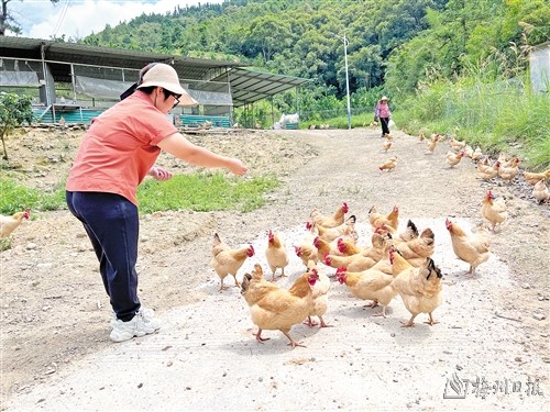 在田苑种养合作社山苍子无抗绿色养殖示范基地,合作社负责人罗春霞正在喂鸡。“去年,在嘉应学院的重视和支持下,我们双方合作开发利用山苍子无抗(即无抗生素)绿色养殖三黄鸡。”罗春霞告诉记者,该项目采用嘉应学院的先进技术和管理方法,以山苍子提取的精油作为鸡饲料添加剂,可以有效解决山地饲养中的生态环境保护和食品安全问题。