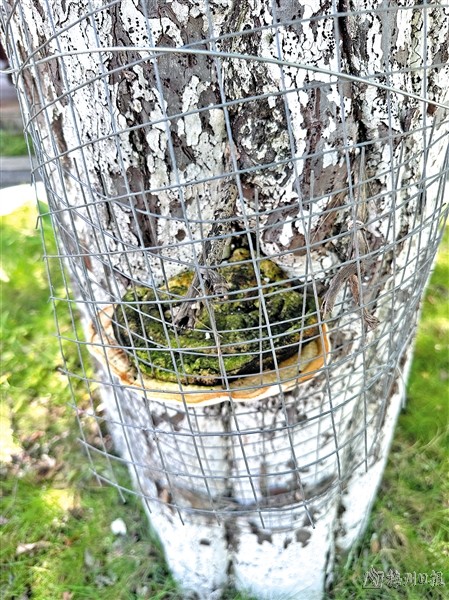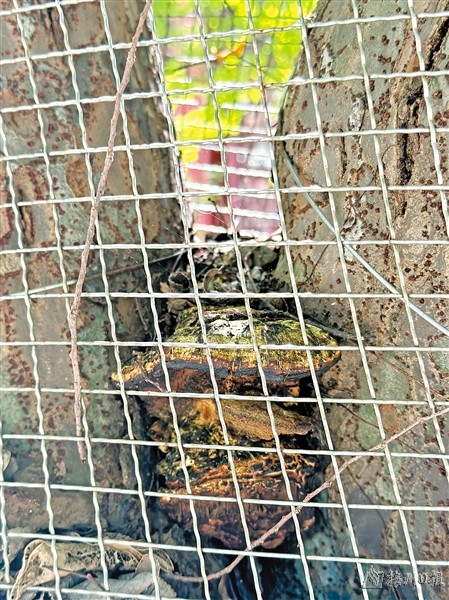 记者看到,一棵百年榆树树干上,3株灵芝宛如大自然馈赠的珍宝悄然生长。只见灵芝柄小,菌盖呈现出扇状,表面附着着绿色的苔藓,像是被大自然精心雕琢过一般,纹理细腻且富有质感,在斑驳的光影下闪烁着温润的光泽。“现在我们用铁网将其围起来,确保这一自然景观能够得到妥善保护和研究。”梅江区博物馆相关负责人认为,这3株灵芝的出现,是大自然赐予的珍贵“礼物”,为这座古老的学宫增添了新的历史底蕴。