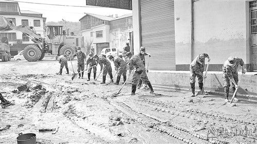 自“6·16”特大暴雨发生以来,蕉岭县委办、蕉城镇等相关部门在做好抢险救灾的同时,由领导带队,组织上百名干部职工,全力支援受灾严重的新铺镇。他们连续作战、日夜奋战,帮忙配送物资,全力做好新铺圩镇街道、同福村各村道等地的清淤清洁工作。清理组成员在蕉岭县城市管理和综合执法局、消防救援大队专业设备的配合下,利用高压水枪、铁铲、锄头、扫帚等工具,齐心协力挥锹铲泥、推扫污水,将原来厚积至膝的淤泥和垃圾清理干净。
