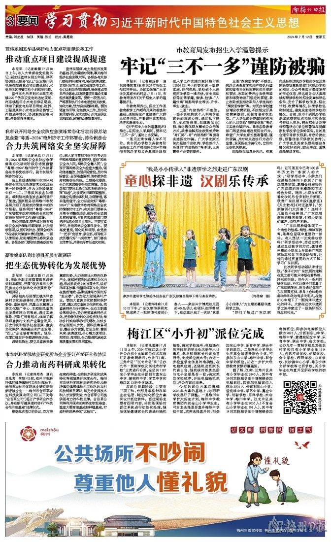 本报讯 (记者张莹娜)7月11日上午,2024年梅江区小学升公办初中电脑派位仪式在梅江区教育局举行,分为“江南、三角片区”“江北片区”和“公办九年一贯制学校及其他农村学校”三类进行分派,全区共7187名小学毕业生分派到市直东山中学、曾宪梓中学、学艺中学和梅江区13所中学就读。