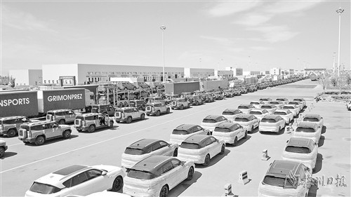 作为全国最大的汽车出口陆路口岸——霍尔果斯口岸今年汽车整车出口数量迅猛增长,出口车型包括新能源轿车、SUV、越野车、工程车辆等。(新华社发)
