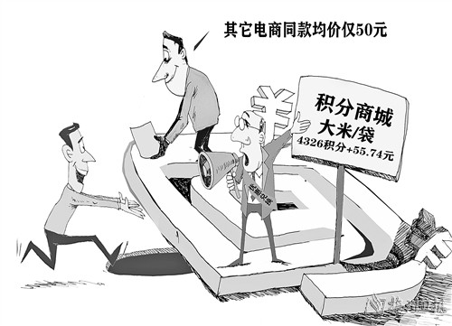 “540积分+39.6元”可兑换一把天堂伞,但在天堂伞官方旗舰店,同规格产品仅需36.99元;“4326积分+55.74元”可兑换某品牌5公斤装长粒香米,但在其他电商平台,同款大米均价在50元左右……有机构的调查显示,在一些积分商城中,积分换购产品价格虚高,消费者使用积分兑换商品反而要花更多钱。而且,积分兑换消费还存在可兑换产品少、产品质量欠佳、七天无理由退货难等问题。朱权/图