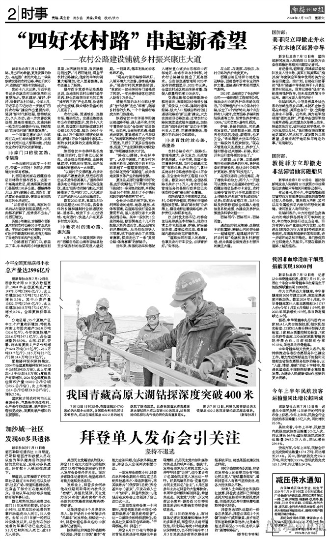 交通运输部公路局副局长郭胜表示,我国将加快推进乡镇通三级及以上公路、建制村通等级路、较大人口规模自然村(组)通硬化路的“新三通”建设,大力实施老旧公路改造、过窄农村公路拓宽改造或错车道建设,加快实施“四好农村路”助力乡村振兴五大工程,完善便捷高效、普惠公平的农村公路网络。