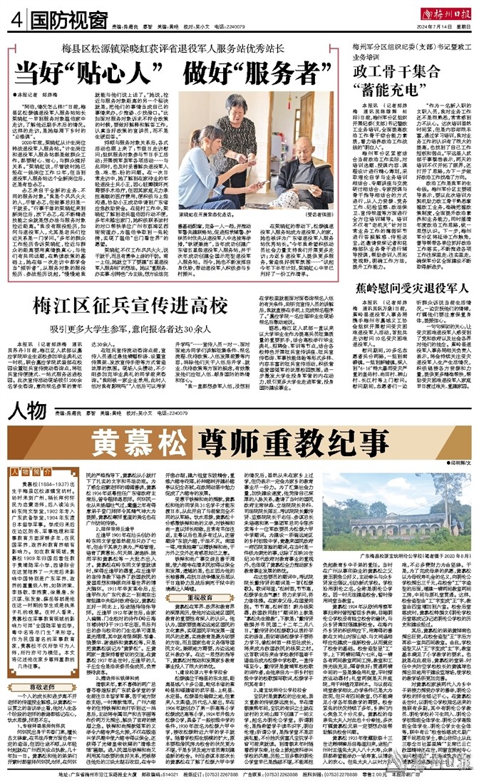 黄慕松(1884-1937)出生于梅县区松源镇宝坑村。幼时来到广州,稍长拜何怀民为启蒙老师,后入读汕头岭东同文学堂,1902年考入广东武备学堂,1904年东渡日本留学军事。学成归来后在边区防务、军事地理和军事教育方面深耕多年,在民国军界、政界和教育界颇有影响力。如在教育领域,黄慕松1909年归国后曾任教于黄埔陆军小学,因缘际会在这里培养了一大批后来影响中国特别是广东军界、政界的重量级人物,如陈济棠、李扬敬、李煦寰、徐景唐、余汉谋、张发奎、薛岳等都是他在这一时期的学生或是执弟子礼的晚辈。在时人看来,黄慕松在军事教育领域的影响力可用“全国陆军皆后学,粤中名将尽门生”来形容。作为民国著名的军事教育家,黄慕松不仅所学可为人师,所行亦可为模范。本文将记述他在家乡尊师重教的几件往事。