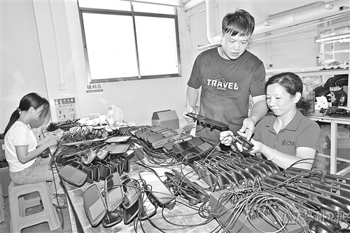 7月9日,记者走进平远县仁居镇的恒芯电子厂,工人正忙着组装儿童相机、行车记录仪等产品,部分工人在清洗被洪水浸泡过的零部件。