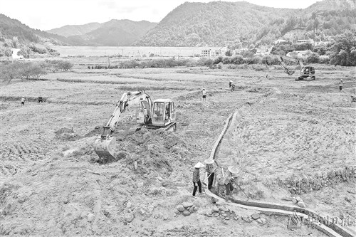 近日,在差干镇差干村,多台钩机在连续作业,争分夺秒清理农田里的淤泥、碎石等,疏通堵塞渠道。农户也加快补种步伐,播下谷种。差干村村委会副主任谢焕君介绍,该村共计有1700多亩农田受灾,为了抢抓农时补种改种,他们向县里申请大型机械设备来清理农田,“第一轮初步将大型的建筑垃圾等从农田清理出去,第二轮则利用钩机等清淤、平整土地,力争在大暑到来前能抢插秧苗,挽回村民损失。”谢焕君说。