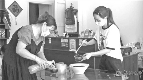 在县城一家雪糕批发店,各类雪糕及凉系饮品获得市民们的青睐,不时有顾客前来购买消费。盛夏时节,商店的雪糕、冷饮等防暑降温产品销量进入旺季。入伏前后,冰爽清凉的仙人粄也迎来了销售旺季。在街头巷尾凉品销售摊档,随处可见市民约上三两好友或带上家人一起围坐在小小的摊位前,来上一份仙人粄,清凉解暑。