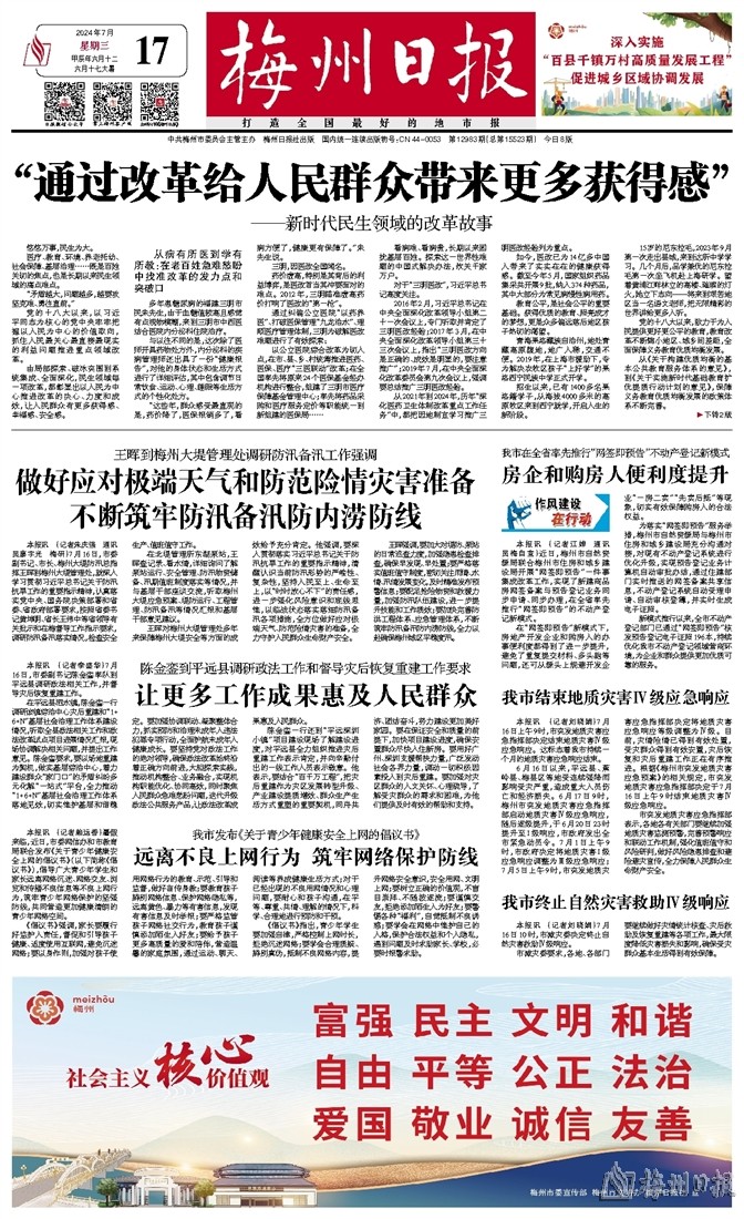 正在举行的党的二十届三中全会,对进一步全面深化改革、推进中国式现代化作出战略部署,必将在高质量发展中持续增进民生福祉,让现代化建设成果更多更公平惠及全体人民。
