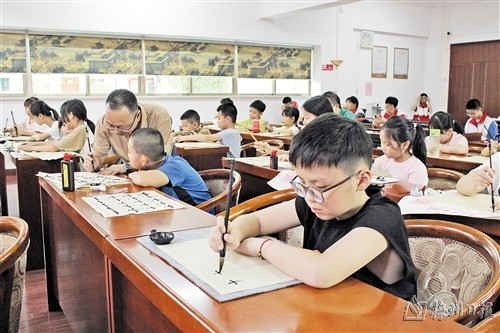 本报讯 (记者吴丽伶)7月16日,梅县区文化馆2024年暑期公益少儿艺术培训活动第一期开课,客家山歌、水彩画、毛笔书法三课连上,为青少年埋下一颗热爱文化艺术的种子。