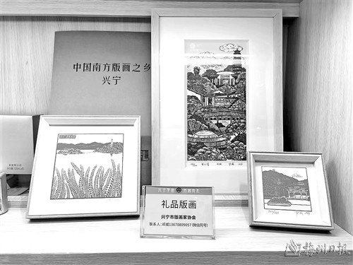 如今,兴宁版画成功入选兴宁手信行列,版画家协会瞄准不同年龄段的审美需求鼓励画家们将流行元素融入版画创作中,并将其制作称为桌边小摆件,颇受年轻人的欢迎。“相信在我们的努力之下,版画的市场也会日渐成熟,版画的发展会越来越好!”吴浩镐说。