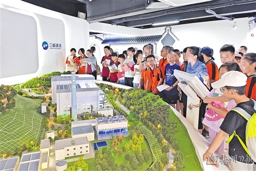 在梅州市三峰环保能源有限公司,学生们跟随讲解员了解垃圾焚烧发电流程,认真学习资源回收利用知识等,进一步提高生态环保意识。在垃圾抓吊车间,工作人员熟练地操纵大型垃圾抓斗,将存放在池内的垃圾送至焚烧炉内焚烧发电,这一场景点燃了学生们的好奇心和求知欲。“大爪子一次性可以抓起几吨垃圾”“垃圾焚烧产生的废渣都去哪儿了”……面对大家提出的疑问,讲解员一一进行解答。