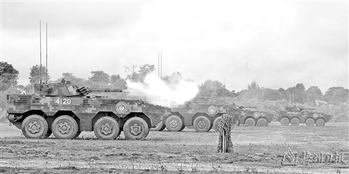 7月18日,在老挝人民军库玛丹学院训练场,中方参演部队进行实弹射击。