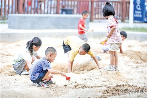 傍晚的梅城剑英公园,沙池成了孩子们的天堂。他们用小手挖出一条条“地道”,堆砌起一座座“堡垒”,欢声笑语在细沙间跳跃。而在梅县区新城中心小学的运动场上,学生们趁着暑假,挥洒汗水,在篮球与足球的世界里尽情奔跑。