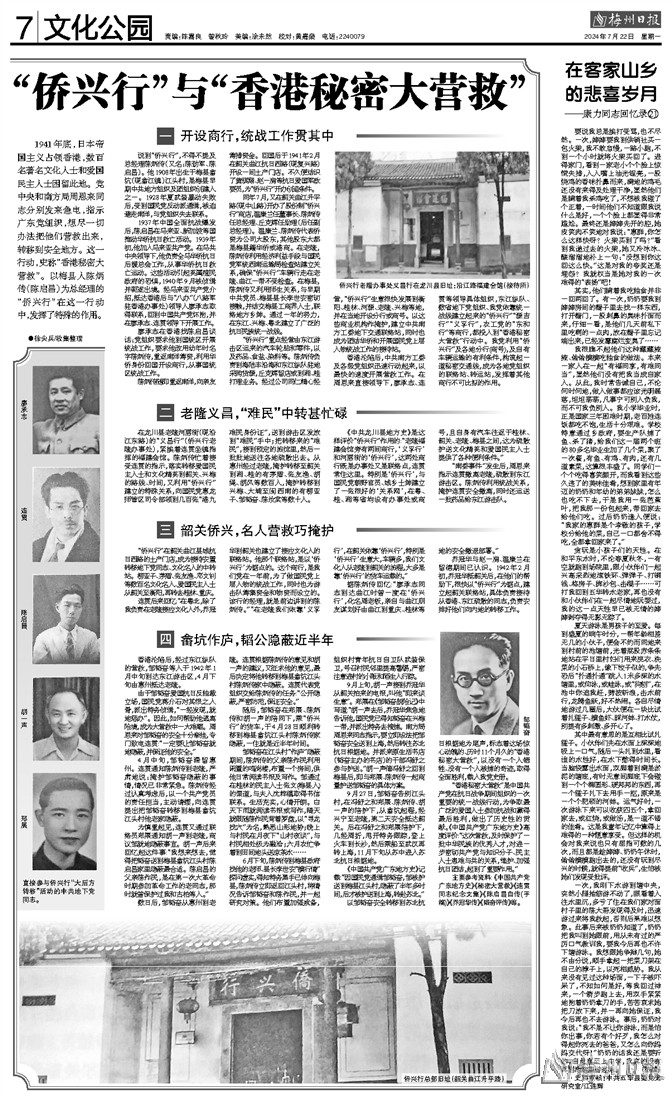 1941年底,日本帝国主义占领香港,数百名著名文化人士和爱国民主人士困留此地。党中央和南方局周恩来同志分别发来急电,指示广东党组织,想尽一切办法把他们营救出来,转移到安全地方。这一行动,史称“香港秘密大营救”。以梅县人陈炳传(陈启昌)为总经理的“侨兴行”在这一行动中,发挥了特殊的作用。