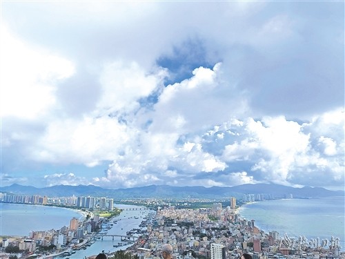 世事虽不尽如人意,但上了山顶就会有风。双月湾观景台视野辽阔,风景绝佳,背山面海,右边半圆是波涛汹涌的双月湾,左边半圆是风平浪静的红海湾。红海湾海面真的蓝啊!海天一色,碧波万顷。是用手机渣像素随手一拍都是大片,无滤镜无美颜的蓝,美到无敌。顿生一种身在双月湾心在红海湾嗟吁。如果行程不赶体力尚可,建议大家可以徒步登山,从山脚停车场到山顶,单程3公里,不算远,试想一下,当你走过或弯或直的山路,穿过树林和芒草,微喘着到达山顶,面对这美到无法形容的画面,该有多么惊喜,登山的劳累顷刻间化为乌有。