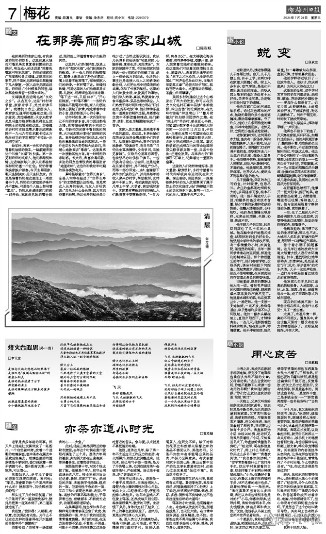 在那美丽的客家山城,有我亲爱的奶奶的故乡。这里的夏天随处可看见果实累累垂到腰间的龙眼树,用当地人的话说是“站着张嘴就可吃到龙眼”。奶奶的娘家在广东省蕉岭县文福镇,龙眼丰收的季节,院子里的龙眼树每年都能摘下几大箩筐,一家人边吃龙眼边说笑。奶奶说:“小时候我的阿爸,每次都会给我留一份最大串的。”