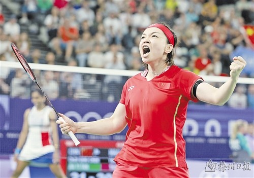 当日,在巴黎奥运会羽毛球项目女子双打小组赛A组比赛中,中国组合陈清晨/贾一凡2∶0战胜马来西亚组合陈康乐/蒂娜。