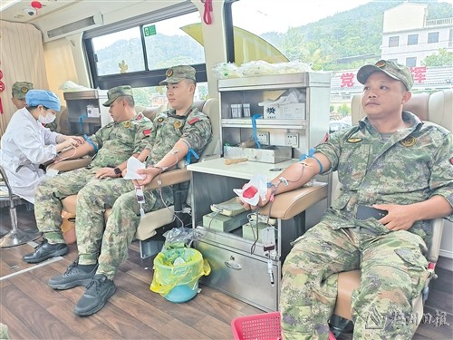 在活动现场,医护人员向官兵讲解献血填表注意事项,帮助官兵进行填表登记、血压检测等准备工作后,经过严格筛选,符合献血条件的官兵开始有序献血。献血过程中,官兵们严格遵守献血秩序,认真按照医护人员的要求进行采血工作。