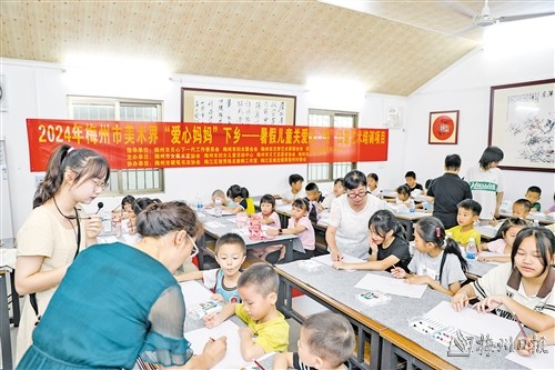 本报讯 (记者林德培)7月27日,2024年梅州市美术界“爱心妈妈”下乡——暑假儿童关爱送“美”公益艺术培训项目在梅江区城北镇黄留村启动。市关工委主任何正拔参加活动。