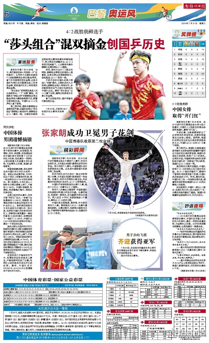 据新华社巴黎7月29日电 在29日进行的巴黎奥运会女子佩剑个人赛中,布吕内击败队友,为东道主法国队摘得在该项目的首金。男子花剑个人赛中,中国香港队选手张家朗成功卫冕。这也是中国香港队收获的第二枚金牌。