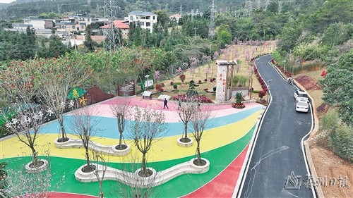 结合“森林小镇”村庄绿化系统的规划,该镇合理布局结构性绿地和公园绿化活动场地。目前,当地已完成“水墨长潭”和“四小园”建设,因地制宜打造“若夫郊野公园”绿美广东生态建设示范点。“我们聚焦文化赋能,打造的公园要能体现厚重的蕉岭历史人文。”王辉介绍,该镇成功地将公园以“忠孝节义”的明末抗清志士赖其肖之号“若夫”作为园址命名。同时多方筹措资金铺设2.5公里森林步道,建设山顶观景平台,把若夫公园打造成群众休闲娱乐、明智学习的“乐园”。