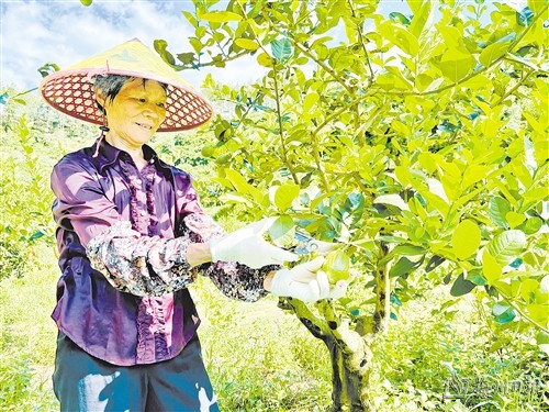 这几天,香水柠檬种植大户罗以隆穿梭在自家种植基地里,时而摘下遗漏在树上的柠檬,时而将一桶桶的柠檬运下山,一刻也没闲着。