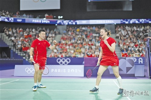 据新华社巴黎8月2日电 8月2日,在巴黎奥运会羽毛球混合双打决赛中,中国组合郑思维/黄雅琼2∶0战胜韩国组合金元昊/郑娜银,夺得金牌。