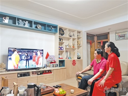 决赛当晚,陈东辉、张苑萍在兴宁城区的家中,早早就守在电视机前,一起等待观看比赛实况。“凡尘组合”一出场,他们就专注地看起比赛,每当陈清晨和搭档赢得一个球,两人都情不自禁地欢呼或鼓掌。当看到女儿夺冠时,他们更是激动得跳了起来。“她的每一场比赛我们都没有落下,这次奥运会也是,每场比赛我们都准时观看。”张苑萍说,女儿最近会不时发来信息告诉他们比赛情况,而两人则会不断鼓励她,并叮嘱她保重身体。