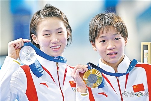8月6日,在巴黎奥运会跳水项目女子10米跳台决赛中,中国选手全红婵获得金牌,另一名中国选手陈芋汐获得银牌。(图片均为新华社发)
