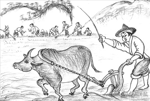 点评:有的农户夏收后就不再种晚稻了,而改种其他作物,如种番薯。有的继续种晚稻,但不管如何,立秋前一定要莳完。放养的鸭子要笼起来,残留的禾兜要踏入田泥可作基肥。闲置的粪寮也要捡整齐,那么多秆草(稻草)要找个地方安放。碛,客家话,读“砸”,压的意思。“番稿”,中稻的一个品种,“踏禾稿”,挖出已收刈完的禾兜踏入田泥中使之腐烂可作基肥。