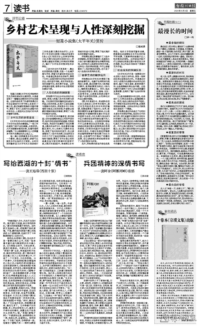 日前由人民文学出版社、中国现代文学馆在京主办的宗璞创作八十年暨《宗璞文集》出版座谈会上,与会专家表示,宗璞以笔耕不辍的精神,为当代文坛奉献了文质兼美的小说、散文、童话、诗歌等作品,并以“诚”与“雅”的文学品格书写了知识分子的家国情怀。希望通过文集的出版,吸引更多年轻人进入经典文学的世界,在学习和传承中发扬文学前辈为人为文的精神风骨。会场还展出了中国现代文学馆珍藏的作家珍贵手稿和照片资料。