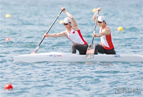 ▲女子双人划艇500米决赛 徐诗晓/孙梦雅折桂 8月9日,中国组合徐诗晓(左)/孙梦雅在比赛中。 当日,在巴黎奥运会皮划艇静水女子双人划艇500米决赛中,中国组合徐诗晓/孙梦雅夺得金牌,并以1分52秒81刷新奥运最好成绩。 |