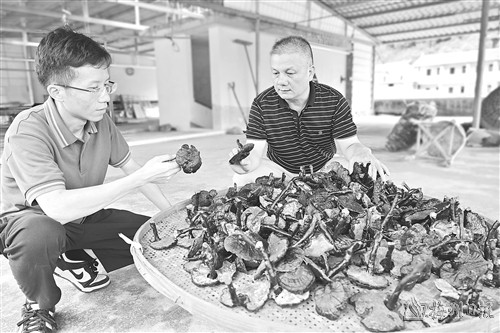 夏日的微风里弥漫着灵芝的香气。“这些都是我们村的致富‘伞’,我们都是非常小心照顾和呵护的!”南磜镇甲华村党总支部书记、村委会主任刘广华拿起一朵灵芝满意地说。