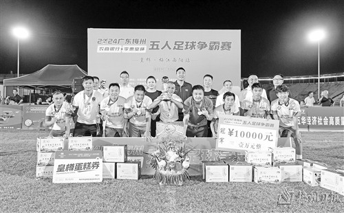 本报讯 (记者叶子通)8月11日晚,2024广东梅州(农商银行·李惠堂杯)五人足球争霸赛(球王争霸赛)皇樽·梅江西阳站决赛在梅江区西阳镇西阳学校体育场举行。梅州雅迪和壹面湖水在常规时间战成0∶0 ,经过点球大战,最终梅州雅迪战胜对手,夺得球王争霸赛皇樽·梅江西阳站冠军,壹面湖水获亚军。