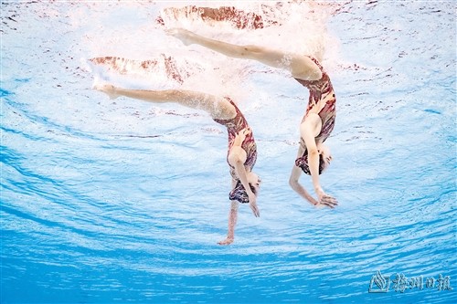 这对双胞胎姐妹9日在演绎《莲》时,在泳衣和头饰设计中融入莲叶图案,动作灵动妩媚,在婉转悠扬的中国风音乐衬托下,生动演绎了中国国画美学,毫无争议地获得全场最高分276.7867分,领先第二名奥地利组合9.5334分,为10日夺冠奠定了基础。