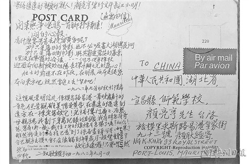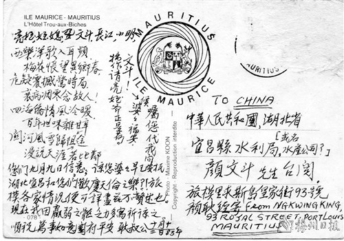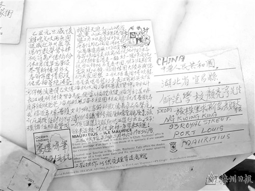 这些海外来鸿,来自非洲毛里求斯岛国,远到我不可想象。父亲说,我爷爷三兄弟民国时就去那谋生了。到了 1980 年,我家搬到宜昌县城,就开始收到二叔公颜耿经的明信片,我们也回信,往来几年,竟累积下一二十张他老人家寄来的毛国风景明信片。