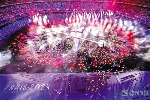闭幕式尾声,从杜乐丽花园带来的奥运火种抵达法兰西体育场。