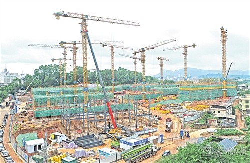 在平远县城城北湿地公园侧深圳小镇安居工程(一期)的建设现场放眼望去,塔吊林立、机械轰鸣,一片繁忙。重型运输车、渣土车来回穿梭,现场的工人们不畏高温,积极抢抓进度。“现在已进行到主体施工阶段,最快的一栋楼都有4层了,”项目施工负责人表示,“下点雨不影响整体进度,我们仍按计划如期推进,在保质保量前提下,确保9月30日前主体封顶。”平远深圳小镇安居工程(一期)占地68亩,建设安居住房565套,为18栋10层建筑。平远县住建局则表示会做好施工保障,“我们会持续做好项目用水、用电、排污及工人饮食起居等保障,保障项目建设高效运转。”县住建局相关负责人说。平远县以及施工单位将有序调度物资和人员,严格把控工程质量关,全力以赴抢时间、抓进度,确保项目如期竣工交付。