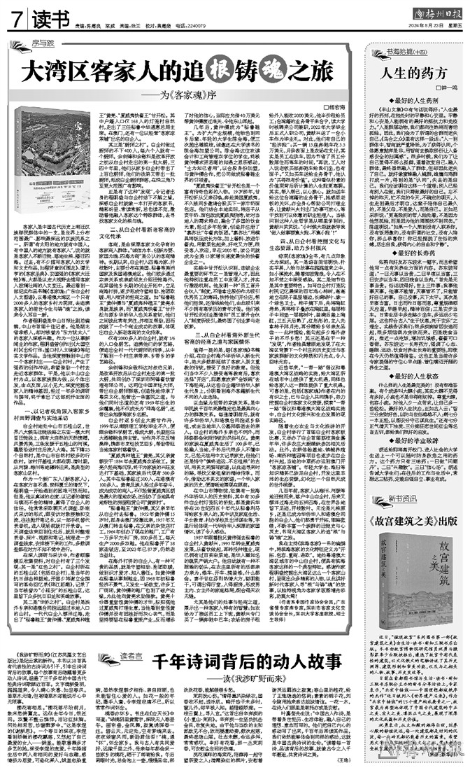 客家人是中国古代历史上南迁汉族移民群体中的一支,是世界上分布范围最广、影响最深远的汉族民系之一。所谓“有太阳的地方就有中国人,有中国人的地方就有客家人”,说的就是客家人不断迁徙、落地生根、播迁四海。过去,有不少描写客家人的文学和文史作品,如程贤章的《围龙》、谭元亨的《客家圣典》、安国强的《客家大迁徙》等,大都是以宏大视野去描写客家人波澜壮阔的人文变迁。最近看到一部纪实作品书稿《客家魂:广东白企村人文图谱》,以粤港澳大湾区一个只有2000多人的客家乡村为观照,去追溯客家人的前世今生与铸“魂”之旅,读来令人耳目一新。
