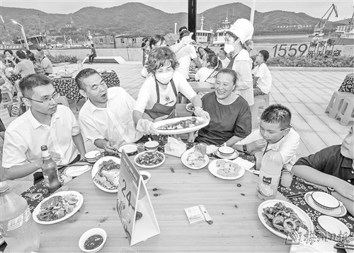 8月23日,浙江省舟山市岱山县长涂镇举行海岛特色黄鱼宴,并举办海岛共富集市,丰富游客旅游体验。