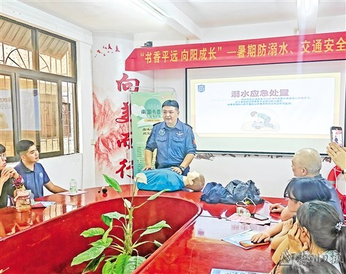 同时,平远分会场举办了交通安全教育讲座,从交通工具、出行习惯等方面,结合非机动车、行人道路交通事故案例,多角度向青少年们讲解出行中需要注意的交通安全事项,警示大家摒弃交通陋习,安全文明出行。活动还进行了“预防溺水”安全知识的宣传,让孩子们在具体案例中得到警示,意识到防溺水的重要性,并仔细讲解溺水施救、心肺复苏、海姆立克等急救方法与步骤。
